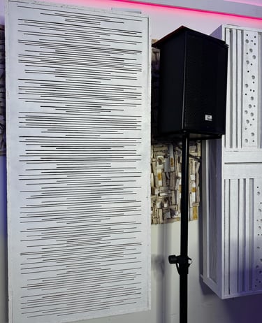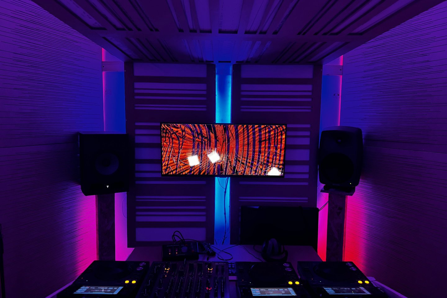 Nuestra sala ha sido diseñada meticulosamente para cumplir con rigurosas mediciones acústicas, garantizando un ambiente ideal para la creación musical, mezcla y masterización